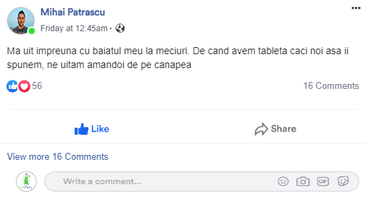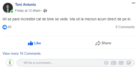 "Mi se pare incredibil cat de bine se vede. Ma uit la meciuri acum direct de pe el."