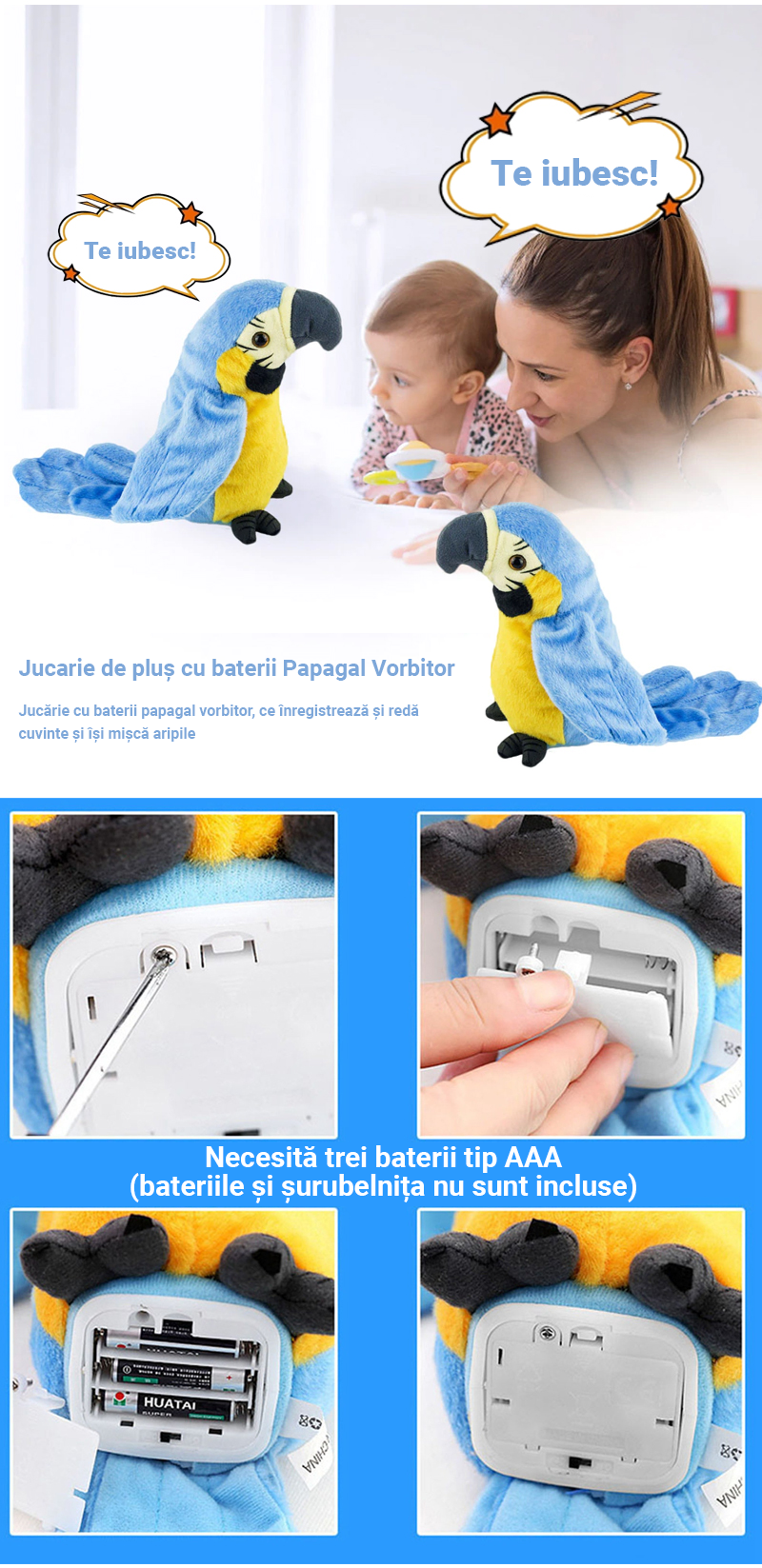 ✔️ Alimentat cu 3x baterie AAA (bateriile nu sunt incluse)